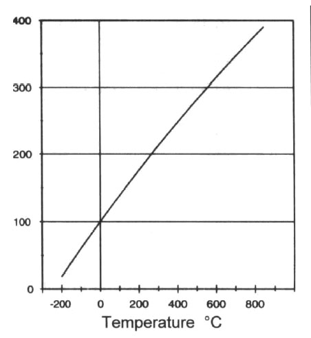 ℃時的電阻值;A —常數(shù)(3.96847×10-3/℃);B —常數(shù)(-5.847×10-7/℃);C —常數(shù)(-4.22×10-12/℃);